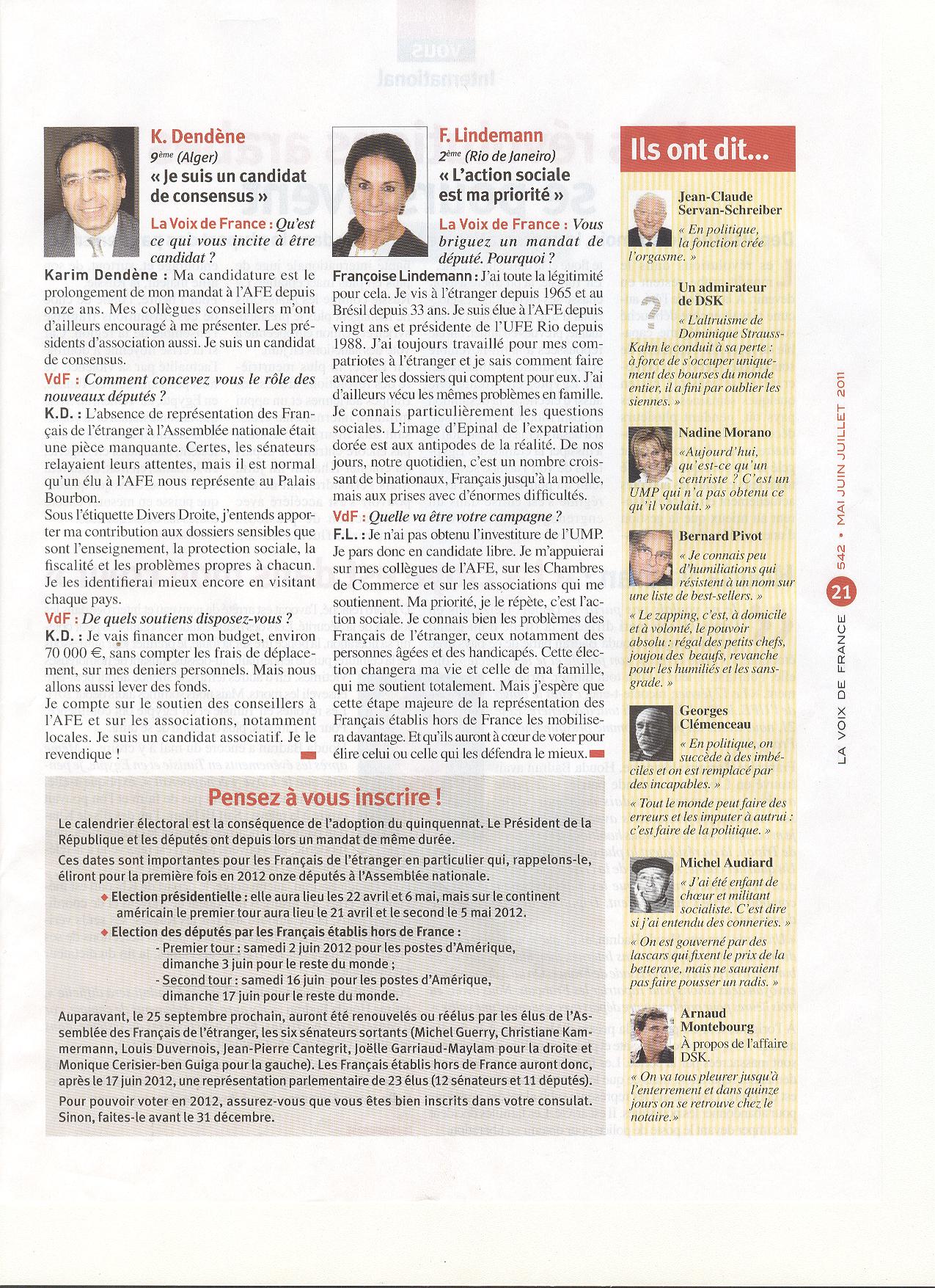 NB :DEVENU CONSEILLER CONSULAIRE LE 1 JUILLET 2014
