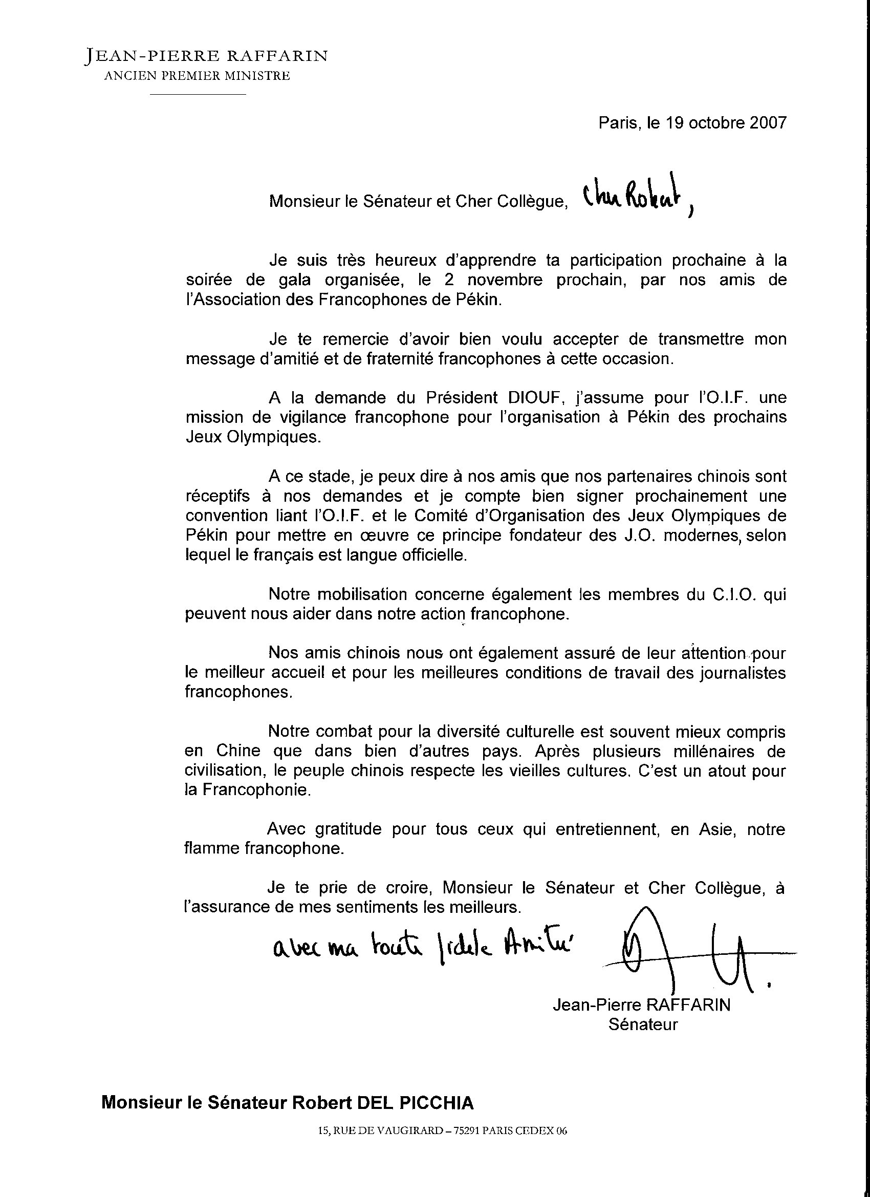 Réponse du Ministère des affaires étrangères et européennes publiée dans le JO Sénat du 20/12/2007
